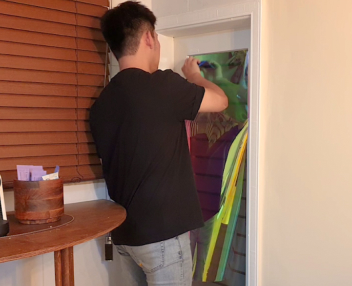 Sunlight cast onto the film will produce sparkling rainbows. The kitchen is now done. The soft Latte Cream nicely complements the rattan objects in the client’s kitchen, bringing sophistication to the entire space.