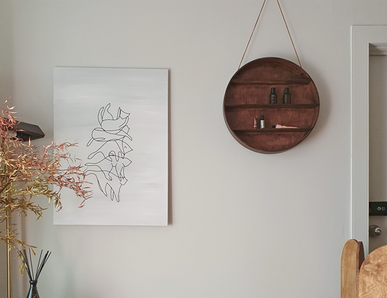 You can deepen the mood of the interior by placing a few objects here and there, such as stones, a modern painting, and a scented candle, against the backdrop of your newly painted wall.