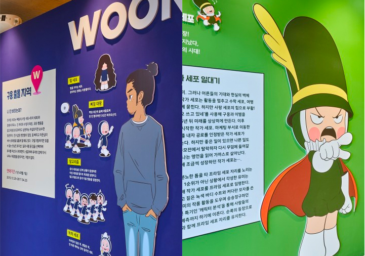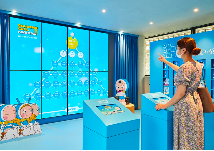 Yumi’s Cells is one of the most popular Webtoon series on Naver.com, with over three billion views so far. The latest special exhibition features illustrations, video, and interactive installations that bring the characters and scenes of the famous webtoon to life.