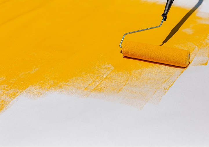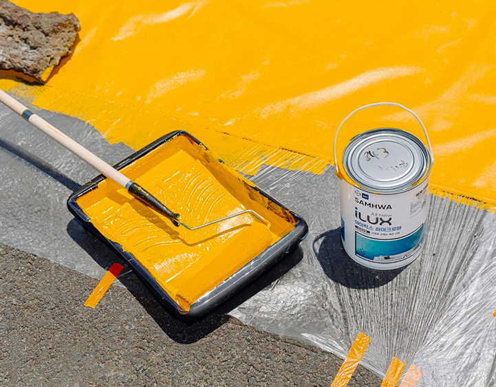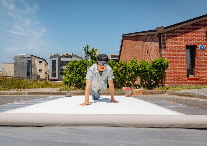 The color chosen for the canvas is Honey Topaz, reminiscent of the canola flowers that are ubiquitous during the Jeju spring. There are few things in life as pleasant as rolling a paint roller across a canvas. It’s truly satisfying to see the sizable space full of such bright, vivid color.