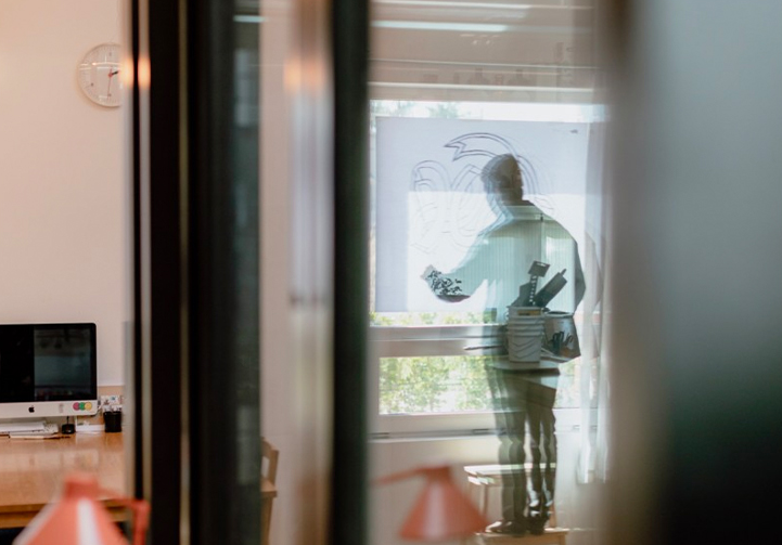 A special guest joined the process—Edel, the illustrator’s cat! A street rescue, Edel is now a central member of Jo’s family and enjoys watching him at work with intent curiosity.