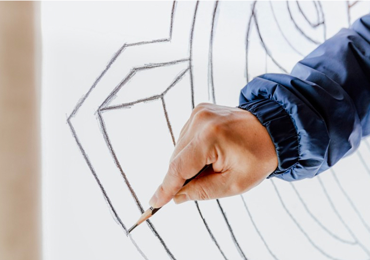 Since the wall was already white, the artist applied two coats of every color, making sure that the finished product would look as even as possible. He used artistic paint markers on the edges in the end, taking great care to finish each line in one smooth go.