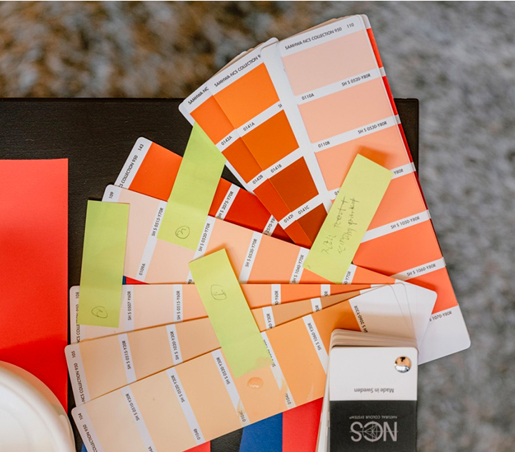 “The final selection included Peach Sherbet, Rose Blush, Peach Yogurt, Madame Coral, Chiffon White, Storm Gray, Charcoal, and Nimbus Gray.”