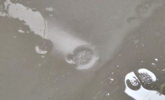 This is when the air or moisture trapped inside the concrete surface beneath the painted layer escapes the concrete and the paint at high pressure, causing the painted layer to rise. It occurs when the base coat fails to fill in the pores in the concrete surface and/or when there is excessive moisture under the painted layer. |