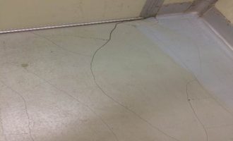 Cracking, alligatoring, or checking refers to breakup of the painted layer, which can occur due to a poor or erroneous mixing of the paints, when the top coat and the base coat dry at different speeds, when a top coat containing a volatile solvent was applied over a base coat that had not yet completely dried, when a top coat or a final coat was applied over a cold surface in cold weather, when a hard top coat was applied over a soft base coat, or when the concrete surface underneath the paint itself cracks. |