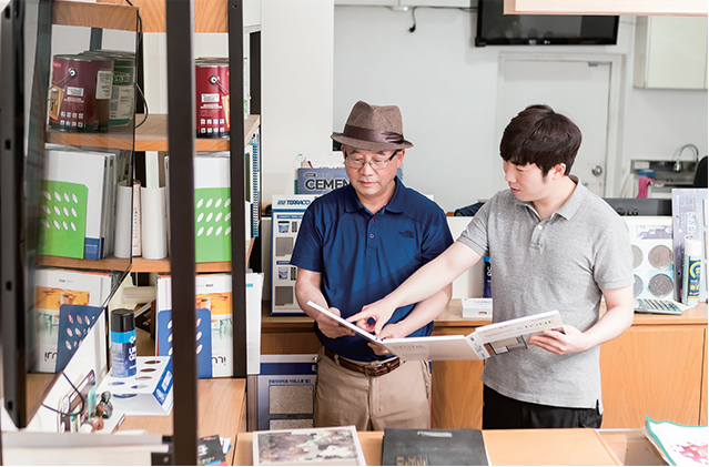 Gyeongdaesangsa, located in Bongcheon-dong, Gwanak-gu, Seoul, is where three generations of the Oh family have been doing business selling Samhwa paints. Oh Yong-gi, the store owner, and Oh Jung-geun, his son, were the subjects of the first interview conducted for the “Samhwa & People” series back in 2012. They continue to work hard at the same store eight years on.
