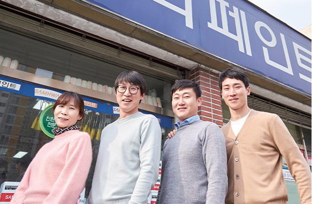Samgeon, located in Dong-gu, Daejeon, is a well-established Samhwa store that handles most major painting projects in the city. The young brothers in their 30s, well known and loved for their sociable personalities and hard work, rack up billions of won in annual sales by winning almost all the major contracts involving public institutions and large apartment development projects in the city, raising the Samhwa profile. Asked to explain why Samgeon is so successful today, the brothers readily pick the legacy of expertise that has been built since their parents’ time, their sensibility for trends and great teamwork.