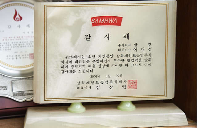 “Our parents got to know each other and became a couple while working at a Samhwa paint store in Daejeon. Having worked in paint retail, they knew the benefits of owning their own store and opened one shortly before they got married. They built today’s Samgeon through hard work and determination. And now we run this business. That’s why we believe Samhwa is in our blood.”