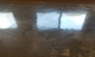 도막의 표면이 갈라지는 현상으로 그 형상에 따라서 Crack, Alligatoring, Checking, 등으로 표현된다. 도료 배합상의 문제일 경우, 상도와 하도의 건조 속도차이가 존재할 경우, 휘발이 빠른 용제가 함유된 도료가 완전히 건조되지 않은 하도위에 도장될 경우, 겨울철 차가운 소지(1st 도막 포함)에 후속 도장될 경우, Soft한 하도위에 Hard한 상도가 적용될 경우, 피도면인 콘크리트 자체 균열로 인해 발생 할 수 있음. |