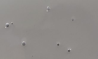 도막 표면에 작은 화산의 분화구 모양 혹은 함몰한 작은 그릇 모양으로 보이는 현상을 말함. 소지면 표면의 유분, 실리콘 성분 등의 오염물이 존재할 시 발생되며 우레탄, 에폭시계 라이닝 저도막으로 도장 시에도 발생할 수 있음. |
