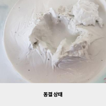 자연 해동 후에도 내용물이 뻑뻑하게 뭉쳐 풀리지 않고 작은 알갱이(SEED)들이 확인되는 경우 사용이 불가능한 상태입니다.